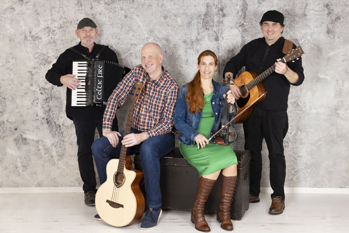 „Wir, drei Jungs und ein Mädel im allerbesten Alter, spielen traditionelle Folksongs aus Irland und Schottland. Ob im Pub in Irland, Open Air, im Wohnzimmer oder in der Kneipe, gespielt wird, wo es mit Gesang, Fiddel, Gitarre, Akkordeon und Bass Spaß macht“, stellt sich Celtic Fire auf ihrem Facebook-Account vor.
