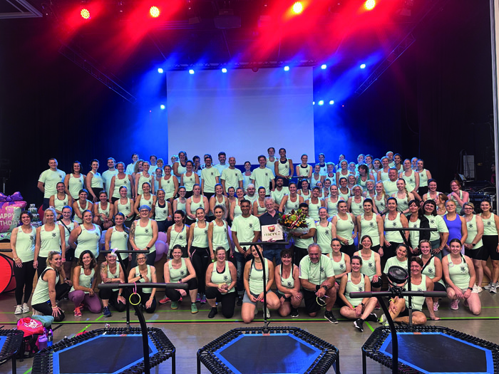 Jede Sequenz war ein Highlight. Jumperinnen und Jumper feuerten sich gegenseitig an, die hochfrequentierte Musik motivierte, schneller zu springen. Nach jeweils 45 Minuten gab es kurze Pausen, in denen kräftig Energie getankt werden musste. Die Brühler Helden haben selbstverständlich auch kleine hausgemachte Snacks vorbereitet. Neben den ganzen Moves auf der Bühne gab es auch zu jedem Slot vorher angefertigte Filme, die im Hintergrund auf der Leinwand liefen.