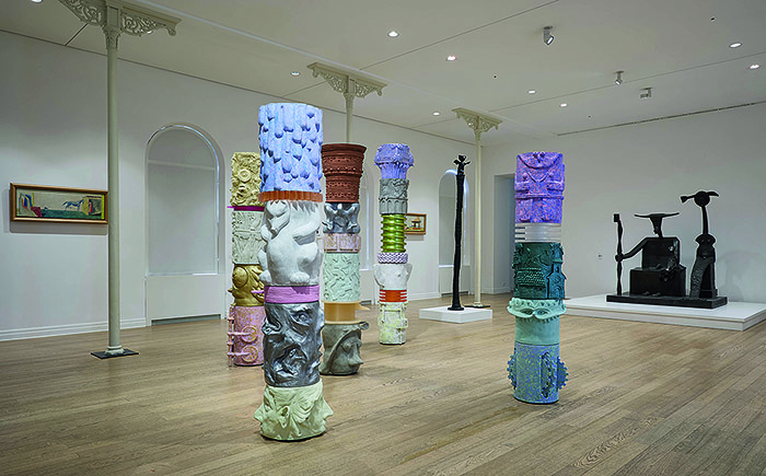 Als visuelle Archive versammeln sie Zeichen und Formen, ohne sie einer Hierarchie zu unterwerfen. Sie schaffen Möglichkeitsräume für neue vielstimmige Erzählungen, in denen Erinnerungen, Identitäten und kulturelles Erbe ineinandergreifen. Die vertikale, säulenhafte Struktur ihrer Achronien verbindet menschliche Geschichte, Geologie und lebende Formen.