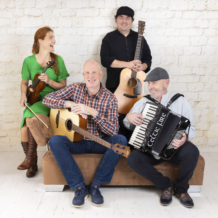 „Wir, drei Jungs und ein Mädel im allerbesten Alter, spielen traditionelle Folksongs aus Irland und Schottland. Ob im Pub in Irland, Open Air, im Wohnzimmer oder in der Kneipe, gespielt wird, wo es mit Gesang, Fiddel, Gitarre, Akkordeon und Bass Spaß macht“, stellt sich Celtic Fire auf ihrem Facebook-Account vor.
