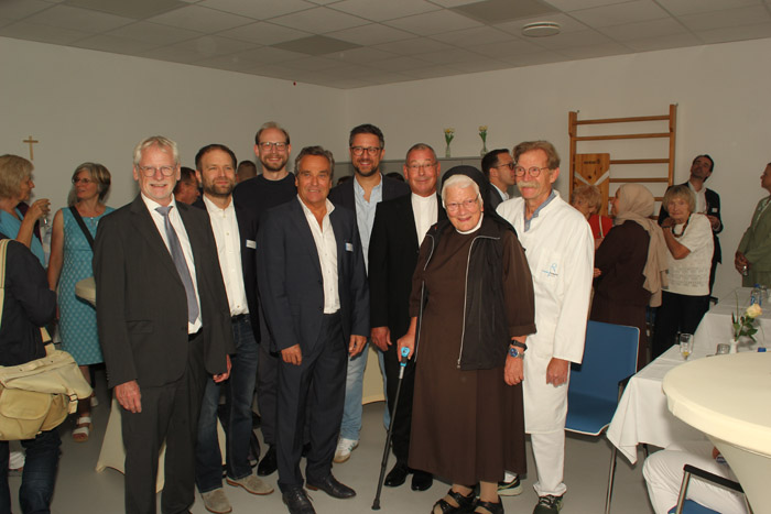 Rund 70 Gäste folgten der Alterstraumazentrum-Einsegnung, zelebriert vom Brühler Gemeindepfarrer Joachim Thull. In modernen fünf Doppelzimmern, großzügigen Bädern und einem Therapieraum für Krankengymnastik, Logo- und Ergotherapie werden zehn PatientInnen umfassend behandelt und betreut.
