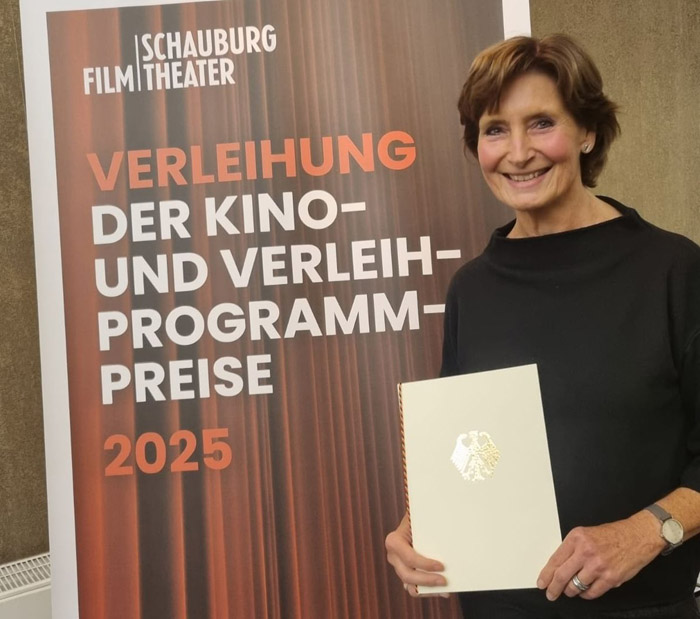 Das Brühler ZOOM Kino gehört weiterhin zu den besten Kinos nicht nur in Nordrhein-Westfalen, sondern sogar in ganz Deutschland. Wieder bekam es gleich mehrere Auszeichnungen für sein tolles Kinoprogramm. Bei der Preisverleihung in Karlsruhe nahm Angelika Nieling (Foto) vom ZOOM Team die Auszeichnungen das herausragende Jahresprogramm (7.500 Euro) sowie für das besondere Kurzfilmprogramm (2.500 Euro).
