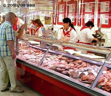 Immer größere Beachtung findet das Angebot von Bio-Produkten, die aufgrund ihrer Verpackung im SB-Bereich zu finden sind. Mehr als 50 Wurst- und Fleischsorten mit der Bio-Auszeichnung gibt es heute, und das Angebot wird ständig erweitert.
