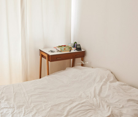 Für die Arbeit „Tische“ hat die Künstlerin Oberflächen von Tischen mit einer glatten weißen Schicht versehen und diese an unterschiedlichsten Orten zur Nutzung aufgestellt. Die zur Verfügung gestellten Untergründe zeichnen nun Spuren von Lebens- und Arbeitsprozessen auf, die sonst im Verborgenen bleiben. Dabei verfolgt Astrid Bredereck die Frage, ob Spuren auch als Zeichnungen gelten können.