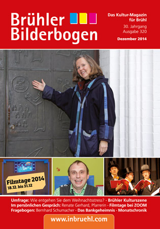 hier an dieser Stelle im Heft hagelt es oft Kritik für Brühler Themen. Mal spöttisch und 'mal ernsthaft nehmen wir hier das unter die Lupe, was uns der Mann auf der Straße zu erzählen hat. Und sicherlich gibt es momentan sehr viele spannende Themen in Brühl wie etwa der Start unserer neuen schwarz-grünen Koalition mit Mehrheit im Stadtrat, das Gezänk um die neue 3. Dezernentin in der Stadtverwaltung, das Scheitern von Hotel-Visionen auf dem Belvedere-Parkplatz oder die drei Varianten für einen neuen Rathhausanbau im Steinweg.